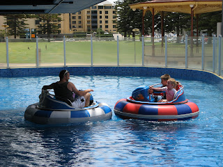 In Adelaide we stayed in West Beach next to the seaside hub of Glenelg. It was lovely really. Fairly windy then a heatwave (36-37 degrees across two days), but we did have fun exploring the area. We enjoyed some great coffees in Glenelg and the kids had a blast at the Beach House amusement park/centre (as a fair reward for the long journey across the Nullarbor). They whizzed down water slides, zoomed in dodgems, squired each other in water boats, went on train rides and the carousel. The operator actually had to stop the carousel for Georgie who had a major meltdown during the usually fun experience. (We hope she won’t have ‘horsie’ nightmares).