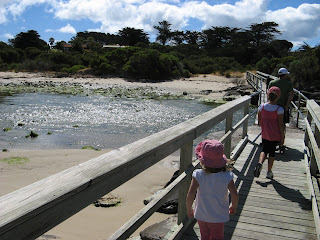 The three big kids and Kate enjoyed a walk across to Griffiths Island, which is reached by footbridge from Port Fairy. The island is the nightly landing place for thousands of birds that return to breed. In addition to birds we did see a good number of large jellyfish and some wallabies (so Harrison called them – Kate unsure…a bit different looking).