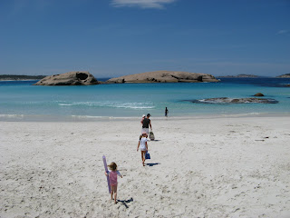 We were really looking forward to Esperance as we had heard from several people that it was a must see and in particular its impressive beaches. (‘Australia’s best’ in one publication). Well the coastline here certainly didn’t disappoint. We were here for eight days hoping for some good weather to enjoy the beach, but frustratingly we were only blessed with good weather on one of these days. The rest of the time we had a mixture of overcast skies, drizzle, rain, wind, squalls….the whole bit. That one fine day we hit the beach eagerly and all had a swim at Twilight Beach which was just so perfect. The kids and Tim spent some time creating fabulous sand models and we all had fun swimming between and around the rocks. Disappointingly we had a gloomy day when we travelled east for a day trip to the renowned Cape Le Grand National Park. It was home to some amazing beaches and rock formations, but a fine day was really what was needed to appreciate its full beauty.