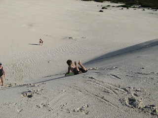 Esperance is home to sea lions which come to shore in search of fish scraps and to bask on the sand and grassy banks in the sun. One large sea lion in particular – ‘Sammy’ was a true resident of the area and was around each time we walked down to the jetty. He had such personality (much like a dog) sitting up in the water, nodding his head hopefully for some handouts from the fish cleaning table. It was a real adventure each day running down to be the first to spot Sammy and see what he was up to. We all had a blast one afternoon driving along the beach to find some massive sand dunes, just perfect for a little bit of excitement involving the kids boogie boards. We all took turns whizzing down the dunes with varying levels of thrill-seekerness. Harrison was the most adventurous walking some distance looking for the best slope for his ride. Even Georgie got in on the action, with Tim holding her in his lap. She looked a little unsure at first, but her little sandblasted face was smiling by the time she came to a halt and she announced her approval by exclaiming ‘wheeee’ as only 18month olds can do so adorably!