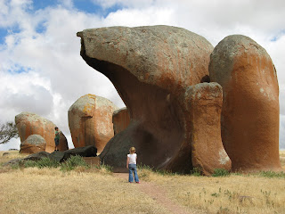 On our way out of Streaky Bay we headed to Murphy’s Haystacks. Ancient pink granite formations rose out of the wheat lined landscape. The grey overcast sky provided a fabulously dramatic backdrop to yet another amazing rock formation! The kids had a hoot running from ‘haystack to haystack’, the flies were the only bother.
