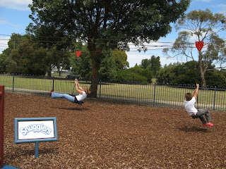 On route to Mount Gambier we stumbled across another incredible adventure playground at Millicent. The kids had a terrific time and even Kate and Tim joined in riding the twin flying foxes!